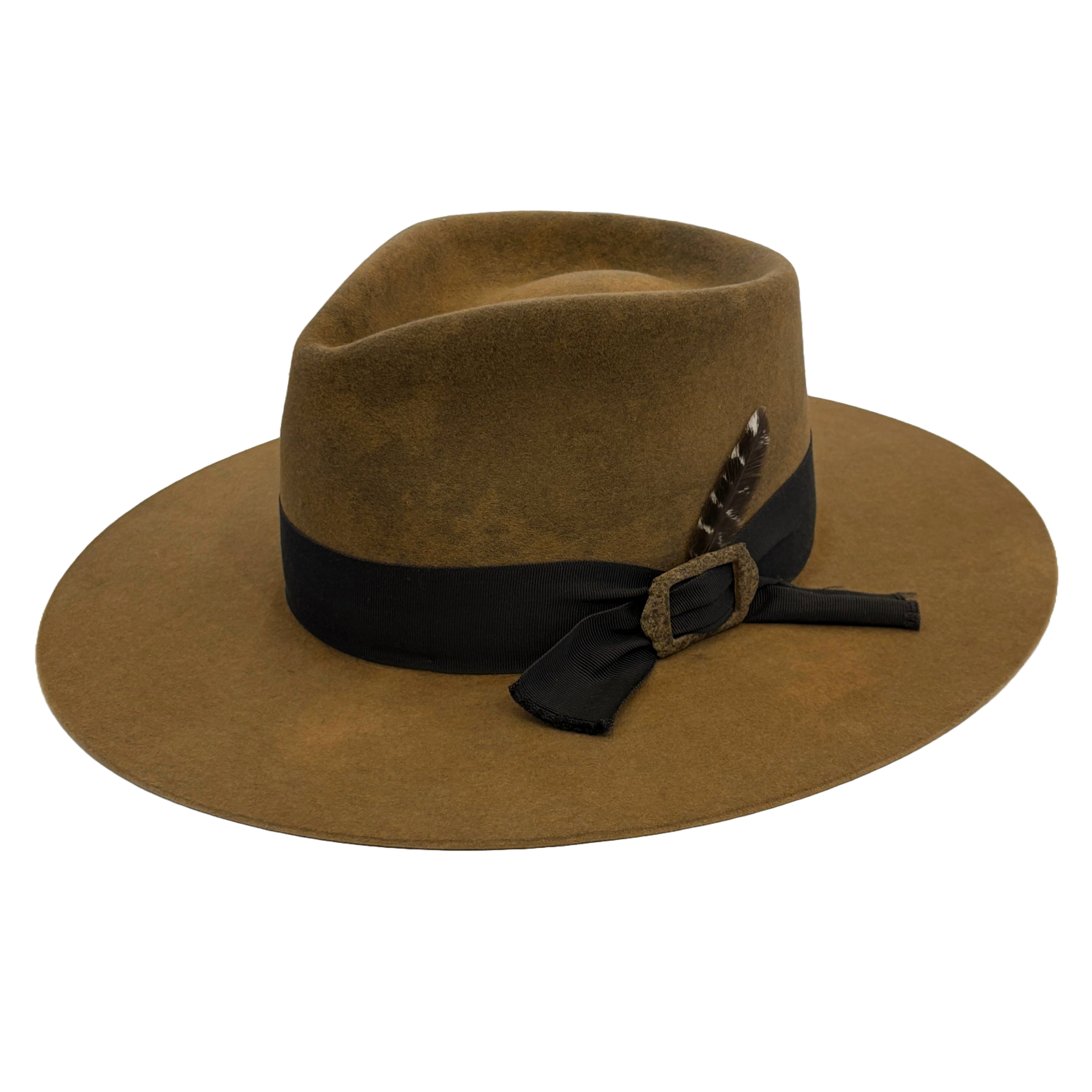• grosgrain hat band w/ buckle & feather