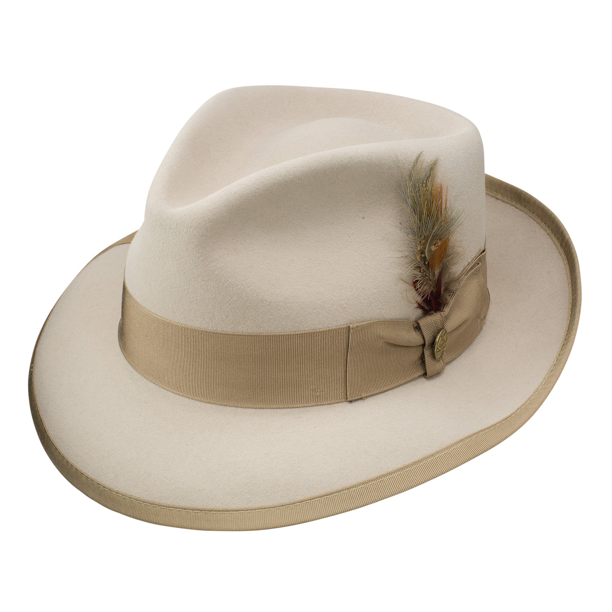 • grosgrain ribbon hatband (feather/pin optional)